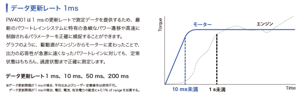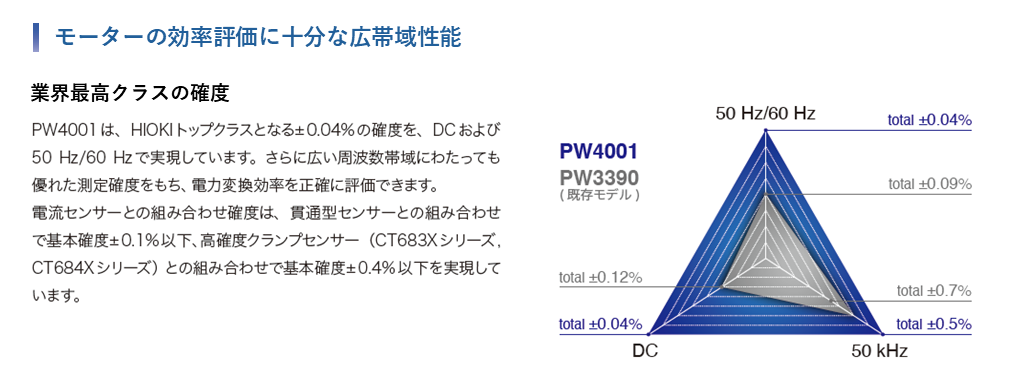 PW4001は、0.1%の効率改善を評価できる性能を持っています。コストパフォーマンスにも優れているため、生産検査ラインへの複数台導入にも最適な製品です。